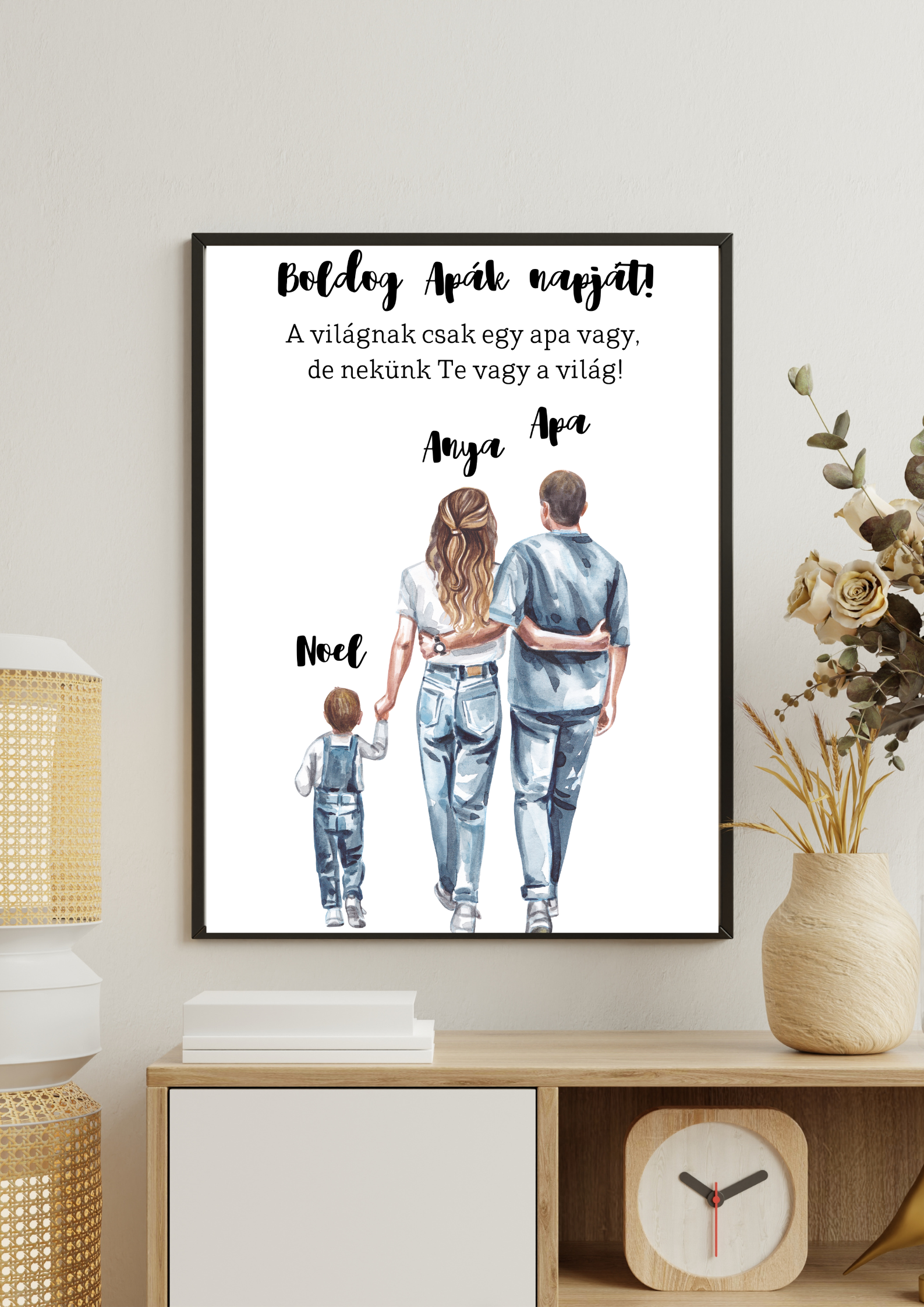 Ajándékozd meg Apát egy olyan emlékkel, amely örökre szívhez szóló marad! 🏡✨ Az Apa, Anya és Kisfiú emlékposzter tökéletes választás Apák napjára, amely egyedi módon örökíti meg a családi szeretet kötelékét. 🎁💫 Személyre szabható névvel, hogy igazán különleges és személyes ajándék lehessen. ❤️