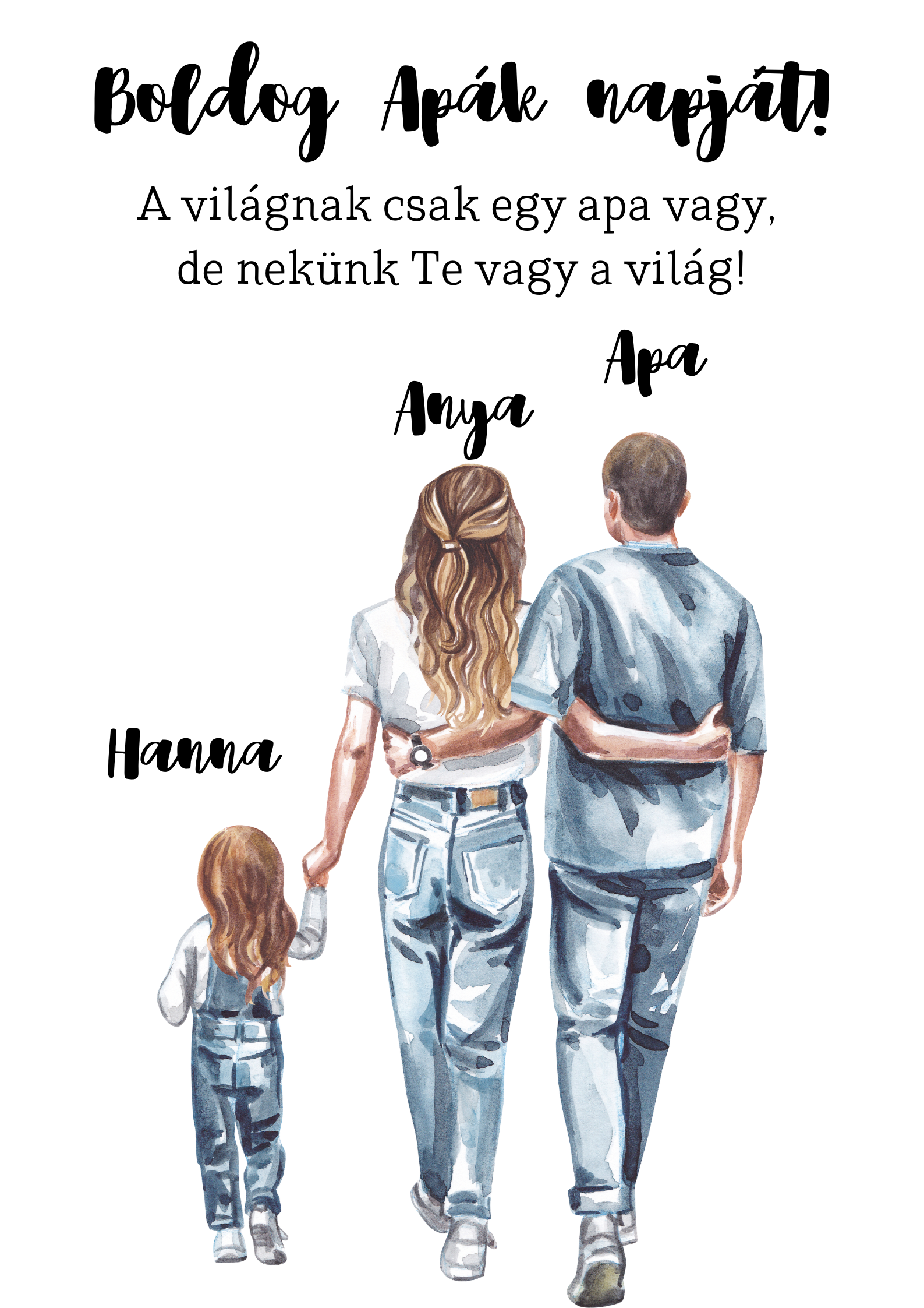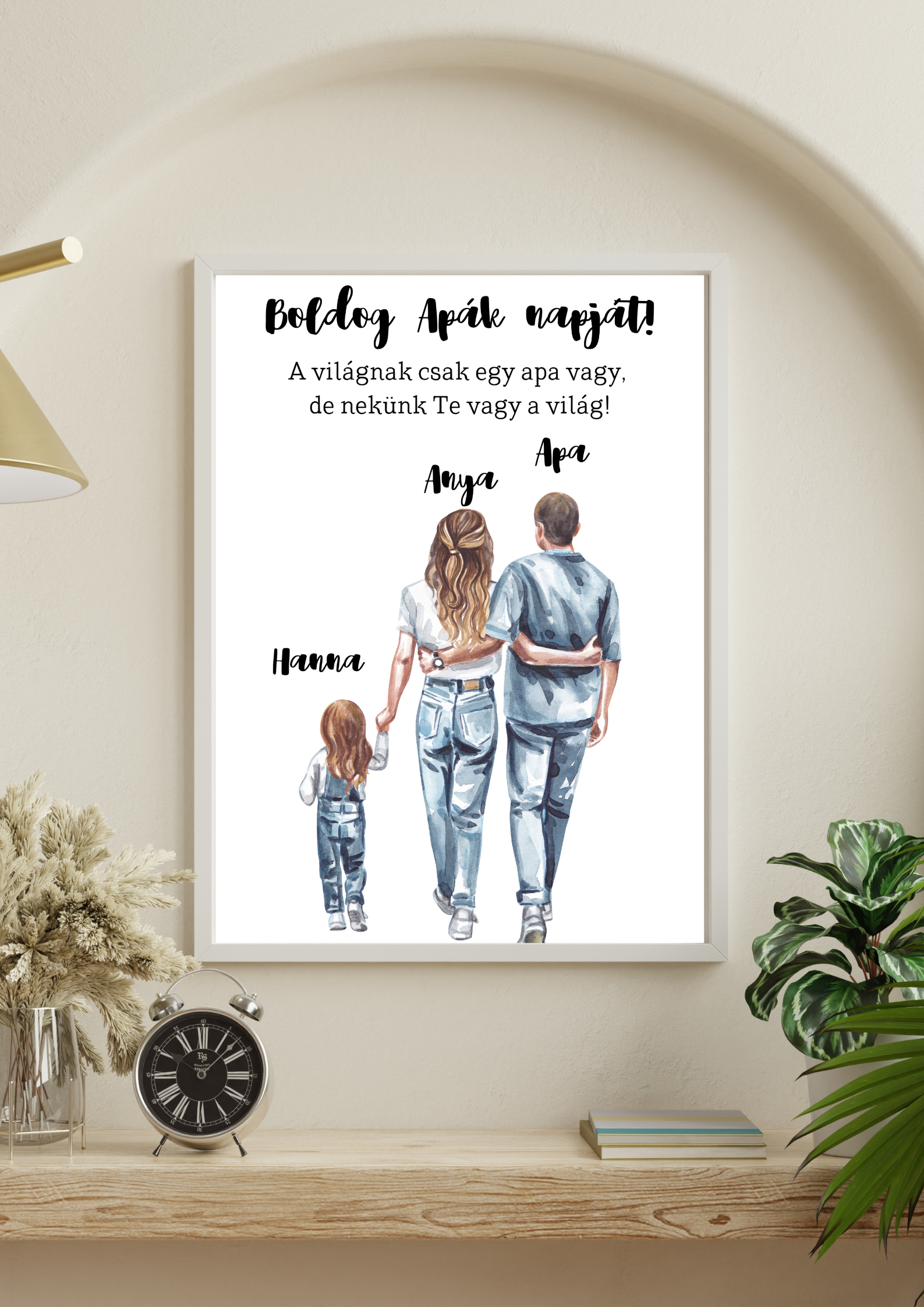 Ajándékozd meg Apát egy olyan emlékkel, amely örökre szívhez szóló marad! 🏡✨ Az Apa, Anya és Kislánnyal emlékposzter tökéletes választás Apák napjára, amely egyedi módon örökíti meg a családi szeretet kötelékét. 🎁💫 Személyre szabható névvel, hogy igazán különleges és személyes ajándék lehessen. ❤️