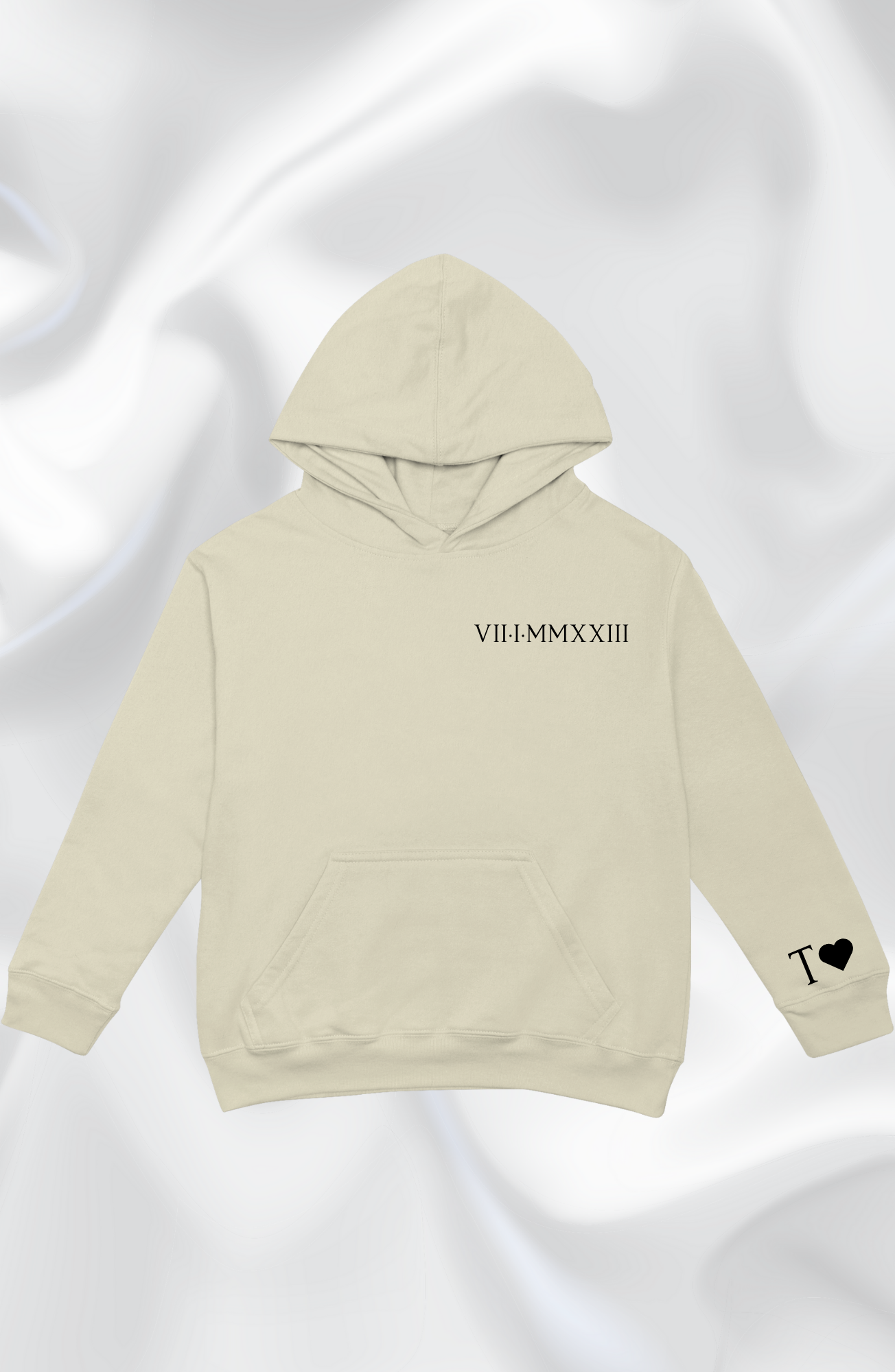 Két élet, egy történet, egy dátum. A Római Számos Emlékhoodie tökéletes módja annak, hogy az évfordulótok örökre veletek maradjon – stílusos formában. A pulóvert a szerelmed kezdőbetűje és egy apró szív teszi igazán különlegessé, a római számok pedig elegáns módon őrzik meg a kapcsolatotok legfontosabb dátumát.